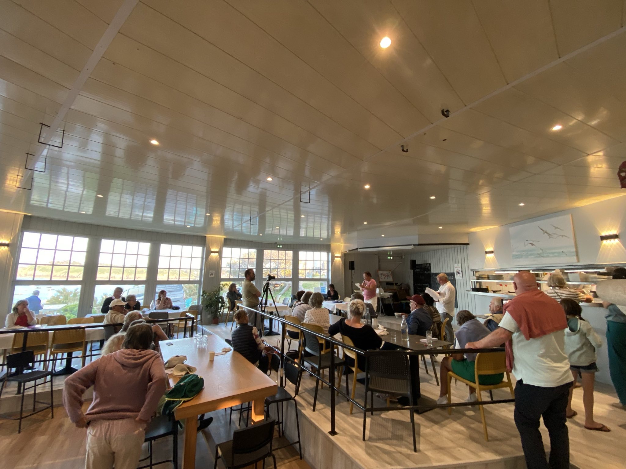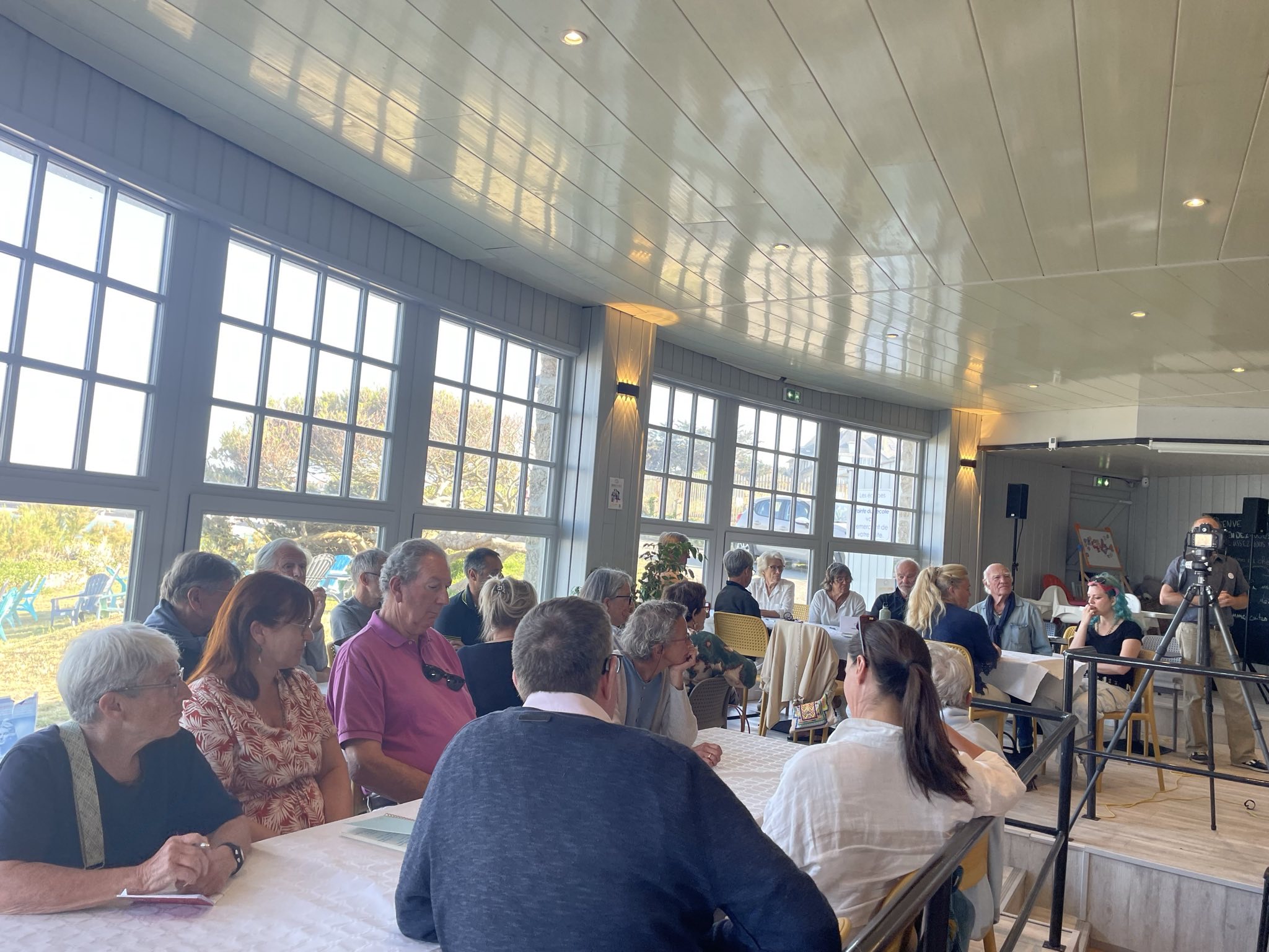 Nous étions près de 80 lunairiennes et lunairiens à nous réunir à la Crêperie L’Amirauté pour réfléchir ensemble à comment réinventer la convivialité à Saint-Lunaire, pour une ville plus vivante au quotidien et toute l’année.